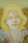 2006Portret van een vrouw met zonnebloemachtig haar.